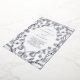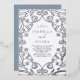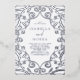 Se trata de una invitación nupcial perfecta que se siente real y elegante con un Relieve metalizado de plata real bonito, color azul polvoriento (trasero), diseño de marco de encaje floral con hojas. Perfecto para cualquier temporada.