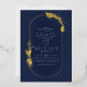¡Añade algo de brillo a tus invitaciones de boda con Relieve metalizado oro, plata o oro rosa de verdad! Este clásico y atemporal estilo metálico seguro que añade otro nivel a tus invitaciones. Estas invitaciones de lujo tienen un gran impacto con un Relieve metalizado realmente prensado. Incorporar elementos sellados con Relieve metalizado en papel de lujo es una manera perfecta de marcar el tono para su celebración. Invitaciones nupciales modernas y minimalistas para cualquier época del año. Este diseño botánico presenta un marco verde dibujado a mano en un Relieve metalizado de imitación dorada sobre un fondo azul marino. Dentro del marco, están sus nombres y detalles del evento en una delicada tipografía blanca. Tus nombres están separados por una pancarta de oro. Las tarjetas se revertirán a un patrón de hoja blanca contra el mismo tono azul. Un diseño versátil, ideal para bodas al aire libre o cubiertas, jardín, casa de campo o granero, primavera, verano, otoño o invierno. Hay más colores disponibles en nuestra tienda. Si desea editar fuentes, ubicación, Relieve metalizado o colores, simplemente desplácese a "Clic para personalizar más adelante" y utilice la herramienta de diseño de Zazzle. Puede elegir fácilmente entre oro, plata y Relieve metalizado de oro rosa de la herramienta de arriba. Mándame un mensaje con cualquier pregunta relacionada con el diseño y estaré encantado de ayudar.