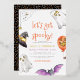 ¡Añade algo de brillo a tus invitaciones para fiestas de cumpleaños con Relieve metalizado de oro, plata o oro rosa! Este clásico y atemporal estilo metálico seguro que añade otro nivel a tus invitaciones. Estas invitaciones de lujo tienen un gran impacto con un Relieve metalizado realmente prensado. Incorporar elementos sellados con Relieve metalizado en papel de lujo es una manera perfecta de marcar el tono para su celebración. ¡Esta espumosa invitación a la fiesta de cumpleaños es perfecta para las celebraciones de Halloween u Octubre! La parte delantera de la tarjeta incluye "¡asustemos!" y los detalles del evento en la tipografía moderna con detalles apretados por el Relieve metalizado; un borde de fantasmas, un gorra mago, un murciélago morado, un globo de calabaza y una telaraña. Las tarjetas cambian a un patrón punteado blanco y naranja contra un fondo negro. Un diseño divertido y sin diferencias de género que se puede personalizar para el caso que usted elija. Si desea editar fuentes, ubicación, Relieve metalizado o colores, simplemente desplácese a "Clic para personalizar más adelante" y utilice la herramienta de diseño de Zazzle. Puede elegir fácilmente entre oro, plata y Relieve metalizado de oro rosa de la herramienta de arriba. Hay más variantes de color disponibles en nuestra tienda. ¡Siéntase libre de contactarme con cualquier pregunta!