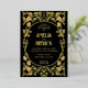 Invitación de boda vertical floral de estilo Art Nouveau en oro sobre fondo negro