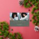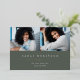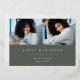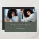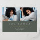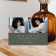 La sencilla y moderna invitación de fotos de graduación incluye dos fotos alineadas una al lado de la otra, con el nombre del graduado, la escuela y el curso bajo letras blancas en un oscuro fondo verde sabio. El nombre y la escuela de tu graduado aparecen debajo, y un acento de Relieve metalizado dorado de moda completa el diseño. Añade un mensaje personal a la parte posterior, junto con una foto adicional.