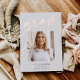 Personalizar esta invitación de graduación de moda con una foto cuadrada colocada en la palabra "GRAD" en la escritura rosa de Relieve metalizado de oro, junto con tu nombre, colegio y año de graduación. Añade una foto adicional y un mensaje personal a la parte posterior.