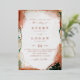 Elegante Resumen de Invitaciones de Boda Eérea de Agua Verde azulada y Cobre con elección de Relieve metalizado real en oro rosa, plata o oro amarillo. Esta moderna invitación a la boda es hermosa, pintada a mano con colores ricos, perfectos para el otoño. Mostrado en la paleta de color Boda Verde azulado oscuro de color: verde pavo real Verde azulado oscuro, óxido de cobre, oro turbio, almendras y beige bizcocho. Con detalles impresos de Relieve metalizado metálico real, y un precioso guión con cruz, la colección de bodas de acuarela etérea hará que su boda sea memorable y hermoso. Para ver más, busca las colecciones bodas 2021 de Moda Paperie para ver diseños más modernos y colores bodas para este año.