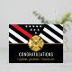 Este diseño cuenta con una bandera de bomberos con rayas blancas y negras y una delgada franja roja. "Felicitaciones" y el texto de la insignia del bombero se sienta por encima del nombre del bombero, lugarteniente o jefe de policía que se retira o se gradúa o de los detalles del fiesta de jubilación. ¡Celebren con estilo!