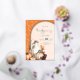 Esta invitación a la cena de Acción de Gracias cuenta la historia de reunirse con seres queridos en un espíritu de gratitud y calidez, combinando el encanto rústico con la simplicidad elegante. El diseño presenta elementos estacionales, calabazas, hojas de otoño, uvas y una jarra vintage, que evocan la cosecha y la abundancia de la naturaleza, mientras que el arco audaz y la tipografía moderna le dan un toque contemporáneo y acogedor. La palabra repetida "Agradecido" en el fondo sirve como un suave recordatorio de la esencia de la festividad, lo que hace que este diseño sea especial porque conecta la tradición con la celebración moderna. No es solo una invitación a una comida, sino a un momento de unión, reflexión y alegría compartida.