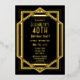 Invitación Con Relieve Metalizado Roaring 20 Art Deco Black | Oro 40 Años En