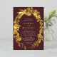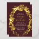 Invitación Con Relieve Metalizado Rojo oscuro y oro | Boda floral de lujo de Borgoña