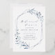 Moderno ensayo de vegetación, invitación a cenar con un diseño rústico de color azul polvoriento de color agua, vegetación botánica, con hojas de Relieve metalizado de oro rosa y marco geométrico, sencillo y elegante. Ver todas las piezas coincidentes de la colección