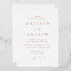 Invitación minimalista y moderna a la boda con sus nombres y detalles bodas en letras de Relieve metalizado de oro subió con acentos caligráficos. El fondo blanco puede cambiarse a un color de su elección. Diseñado para coordinar con nuestra colección de bodas Modern Elegance.