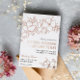 Invitación a la boda floral de rosa dorado y blanco con arte de flores y vegetación y una combinación de fuentes románticas y elegantes y fuentes modernas en Relieve metalizado dorado gris y subió. Invitación a la boda floral de oro Rosa con elementos florales dibujados a mano.