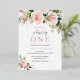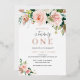 Invitación Con Relieve Metalizado Rosa Chica Floral Rubor Rosado Primer Cumpleaños F