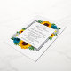 El diseño presenta elegantes girasoles, rosas y margaritas con una paleta de colores dorados amarillo, verde azulado y blanco. El diseño también cuenta con un marco de Relieve metalizado real. Puede cambiar el color de fondo en la parte delantera y de vuelta al color de su elección o dejar ambos en blanco.