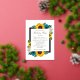 El diseño presenta elegantes girasoles, rosas y margaritas con una paleta de colores dorados amarillo, verde azulado y blanco. El diseño también cuenta con un marco de Relieve metalizado real. Puede cambiar el color de fondo en la parte delantera y de vuelta al color de su elección o dejar ambos en blanco.