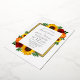 El diseño cuenta con elegantes girasoles, rosas y flores silvestres con una paleta de colores dorados amarillos, rojos y naranjas. El diseño también cuenta con un marco de Relieve metalizado real. Puede cambiar el color de fondo en la parte delantera y de vuelta al color de su elección o dejar ambos en blanco.