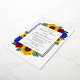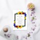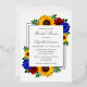El diseño presenta elegantes girasoles, rosas y flores silvestres con una paleta de colores dorados amarillos, rojos y azul marino. El diseño también cuenta con un marco de Relieve metalizado real. Puede cambiar el color de fondo en la parte delantera y de vuelta al color de su elección o dejar ambos en blanco.