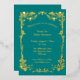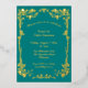 Invite a sus invitados con estilo con esta exquisita invitación de boda inspirada en el Art Nouveau. Con un rico fondo verde esmeralda bellamente adornado con rosas doradas con baño de oro y delicado follaje, este diseño emana elegancia y sofisticación atemporales. El intrincado detalle y el efecto de lámina metálica de lujo crean una primera impresión verdaderamente memorable para su día especial. Perfecto para bodas formales, aniversarios o cualquier celebración grandiosa que busque un toque de encanto vintage y opulencia. Personalice fácilmente todos los detalles del evento para hacerlo único.