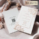 Esta invitación a la boda es una impresionante representación de la belleza natural de la primavera, combinando perfectamente elegancia con encanto botánico. Las auténticas flores de Relieve metalizado dorado subió le dan un toque delicado y lujoso, mientras que el diseño moderno mantiene el conjunto fresco y sofisticado. El equilibrio perfecto entre la moda boho y la elegancia clásica le confiere un encanto atemporal y contemporáneo, lo que lo convierte en una elección ideal para las parejas que desean celebrar su amor de una manera íntima y elegante. Es una invitación que refleja el viaje de la pareja y marca el tono para un boda lleno de belleza natural, momentos inolvidables y conexiones sentidas.