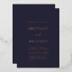 Invitaciones a Relieves metalizados de Rosa de Boda de oro de la Marina Moderna minimalista. Diseñador Minimalista de invitaciones a la boda moderna por Simon & Grace. Personaliza con el nombre y los detalles del boda de Bride y Groom. Mostrado en texto real de Relieve metalizado de oro rosa en nuestra señalización azul marino real medianoche (Relieve metalizado plateado y Relieve metalizado dorado también disponible). El usuario puede personalizar todo el texto, las fuentes y los colores utilizando las herramientas que se proporcionan en los menús de personalización y personalización de Zazzle. Le invitamos a visitar nuestra tienda de Zazzle, Simon & Grace, para ver productos a juego y más. Póngase en contacto con nosotros si necesita ayuda.
