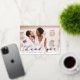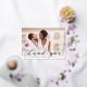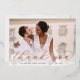 Elegante tarjeta de agradecimiento nupcial con una sola foto boda horizontal o orientada al paisaje, con "Gracias" colocado en el guión de caligrafía de Relieve metalizado oro rosa de moda. Personalice con sus nombres y fecha de boda en la parte inferior en letras de bloques clásicas. Añadir un mensaje personal y una firma al reverso.
