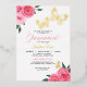 Invitación Con Relieve Metalizado Rosa rosa mariposa Quinceanera Real