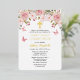 Invitación Con Relieve Metalizado Rosado Roses Butterflies Floral Primera Santa Comu