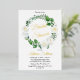 Hermoso color de agua rosas blancas Bridal Shower diseño de corona con adorable eucalipto y vegetación de helecho en tonos de sabio dusky a vibrante Relieve metalizado oro real color de oro real editable texto de escritura. La temática continúa en la parte trasera con un desprendimiento floral y vegetal en la parte superior e inferior.