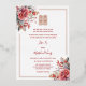 Esta moderna invitación a la boda china incluye un verdadero Relieve metalizado de oro rosa, doble símbolo de felicidad y flores de rosa pintadas con acuarela sobre un fondo blanco. El reverso tiene el mismo tono rojo que el guión. Con un texto chino tradicional en el dorso rojo.