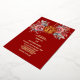 Esta moderna invitación a la boda china incluye un verdadero símbolo de doble felicidad de Relieve metalizado dorado y flores de rosa pintadas con acuarela sobre un fondo rojo.