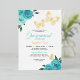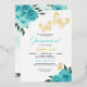Invitación Con Relieve Metalizado Rosas turquesa de mariposa Quinceanera Real