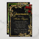 Invitación Con Relieve Metalizado Roses, Photo & Gold Frame - Black Quinceanera