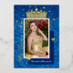 Invitación Con Relieve Metalizado Royal Blue Elegant Photo Quinceañera Gold