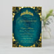 Invitación Con Relieve Metalizado Royal Verde azulado Gold Elegant Script Quinceaner