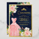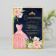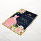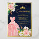 Invitación Con Relieve Metalizado Rubor Pink Floral Gown Navy Blue Quinceanera Gold