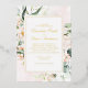 Rubor Pink & Greenery Elegant Wedant Relieve metalizado dorado Invitación Mensaje para cualquier ajuste necesario o elementos coincidentes