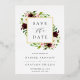 Nuestra boda de Rubor Romance salva los marcos de fecha con las palabras "salva la fecha" con un elegante borde de marsala borgoñona, flores rosa y marfil ruidosas con un frondoso follaje con acentos de Relieve metalizado dorado. Personalice con sus nombres, fecha de boda y ubicación debajo, y agregue detalles adicionales al reverso.