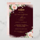 Invitación Con Relieve Metalizado Rubor rosa Burgundy Floral Quinceanera Cumpleaños