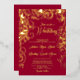 Elegante rubí rojo y real Relieve metalizado dorado abstracto invitación a la boda floral. Toda la redacción se puede personalizar y el color de fondo rojo rubí se puede cambiar a otro color.