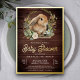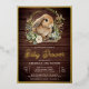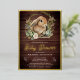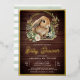 Invitación Con Relieve Metalizado Rústico Wood Cute Bunny Floral Baby Shower Gold