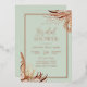 Invitación Con Relieve Metalizado Sage Green Boho Moda Bridal Shower Real Rosa Gold