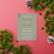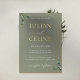 Captura la esencia de la elegancia con esta sabia invitación temática verde y boda dorado, perfecta para parejas que buscan un aspecto moderno pero atemporal. Con un suave fondo verde salado, delicadas brotes botánicas acuarelas de eucalipto y vegetación enmarcan las esquinas superior izquierda e inferior derecha, creando un diseño minimalista y fresco. La tipografía en blanco espumoso combinada con sutiles acentos de Relieve metalizado dorado aporta un toque lujoso a esta invitación, por lo que es ideal para bodas en el jardín, ceremonias al aire libre o celebraciones clásicas. Esta sabia invitación a bodas de oro y verde refleja maravillosamente un estilo refinado, sencillo y sofisticado. Completamente personalizable y fácil de personalizar, esta invitación invita a sus invitados a celebrar su día especial con estilo, perfectamente alineado con su temática verde sabio y boda dorado.