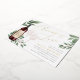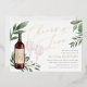 ¿Planear una copa de vino o una cata de vinos con ducha de novia, o organizar el gran evento en una bodega o viñedo? Invite a sus huéspedes con nuestras elegantes invitaciones a la ducha de novias con degustación de vino, con una botella de vino tinto y dos copas de vino y adornadas con hojas de eucalipto y follaje de color verde. "Saludos a Amor" aparece en la moda con letras de Relieve metalizado de oro caligrafía. Para terminar, personaliza la etiqueta de la botella con las iniciales de la pareja. Perfecto para las duchas de novios en el campo vinícola, bodega o viñedos.