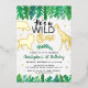 Invitación Con Relieve Metalizado Salvajes Un Safari Jungla Niños Primer Cumpleaños
