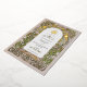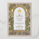 Presentando una sofisticada y culturalmente rica invitación a Guardar la Fecha, perfecta para anunciar su día especial. Esta exquisita carta presenta un diseño Art Nouveau, que recuerda al estilo de Alphonse Mucha, adornado con acentos de Relieve metalizado verde sabio y dorado que exudan elegancia. El arco central enmarca elegantemente los nombres de la pareja, con un delicado fondo crema. La caligrafía islámica añade un toque de tradición e importancia personal, lo que la hace ideal para las parejas musulmanas que buscan una mezcla de patrimonio cultural con arte clásico. El lujoso Relieve metalizado dorado que se detalla en una paleta verde salva crea un ambiente lujoso, mientras que los intrincados motivos florales y las líneas fluviales dan un guiño a la belleza natural que complementaría un destino boda rodeado por el esplendor de la naturaleza.