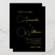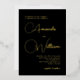 Simplemente hermosa, esta moderna y elegante invitación a la boda tiene un guión de caligrafía de Relieve metalizado de oro real que explica los nombres de la novia y del novio. Guau a sus invitados bodas con esta invitación increíblemente elegante. Personalice la plantilla de texto con su información.
