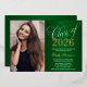 Invitación Con Relieve Metalizado Script Green 2025 Photo Graduation Party Gold