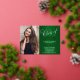 Elegantes invitaciones para la fiesta de graduación de fotos de guion para celebrar su gran día. Colores clásicos de oro, blanco y verde. Una gran opción para una graduación superior de la escuela secundaria, una graduación universitaria o una fiesta de graduación.