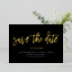 Invitación Con Relieve Metalizado Script Moderno Mínimo Ahorra La Fecha Oro Negro