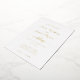 Una verdadera invitación a la boda con un guion de RELIEVE METALIZADO DORADO que combina una caligrafía de batida con un crujiente libro blanco resalta esta rústica invitación a la boda caligráfica.