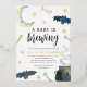 Estas espeluznantes invitaciones a la ducha de bebé con temática de moda de Halloween incluyen un caldero burbujeante, murciélagos, huesos, una luna creciente y estrellas del Relieve metalizado dorado, con "un bebé se está preparando" en el centro. Personalice los detalles de la ducha para bebés.