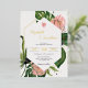 Invitación Con Relieve Metalizado Selva tropical floral flor rosa moderno y hojas